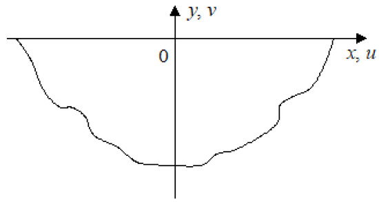 Consider the solution to the plane problem of the elasticity theory for a half-plane (Figure 3) under the effect of a concentrated force. Replace the Dirac delta function by the Whittaker–Shannon–Kotel’nikov (WSK) interpolating function [70,71,72]. Note that the Whittaker–Shannon interpolation formula or sinc interpolation definitions are also used.