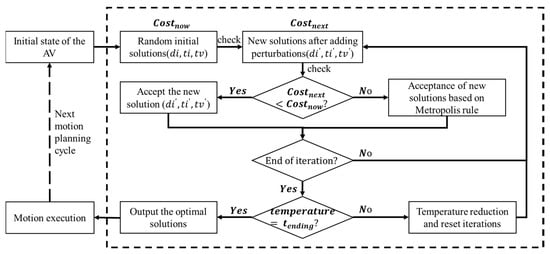 Figure 4. Optimal trajectory searching process for an AV in a motion planning period.