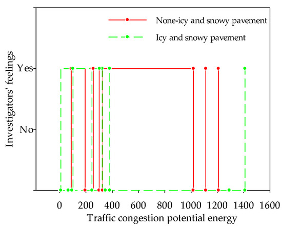 No obvious boundary exists between different congestion levels, and different people have varied perceptions and tolerance of different congestion levels. To determine the mutation threshold of traffic congestion potential energy between different levels of the main road in cold-climate cities, this study establishes the quantitative relationship between traffic congestion potential energy and traffic congestion situation from the perspective of travellers and uses scientific methods to divide the variation range of potential energy.