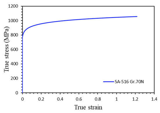Stress–plastic strain curve of SA-516 Gr.70N sheet metal plate.