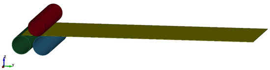 The FE model of the entire three-roll bending process consists of a sheet and rollers. The sheet material is assumed to be isotropic, and the material model is taken to be elastoplastic. The implicit/explicit time integrations are applied for the calculation, and the gravity effect of the metal plate was considered. However, during the simulation, the LS-DYNA algorithm understands the time integration and simulates the model accordingly. Here, the simulation of the given model is done by using the implicit method.