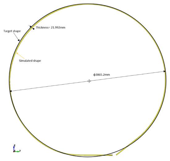 However, in recent years, much work has been devoted to the modeling and simulation of the bending of sheet metal. Many publications exist on the fabrication and finite element simulation of roll bending [8,9,10,11,12,13]. However, it only applies to roll bending of open geometry workpieces of sizes less than 100 mm in any dimension; little is reported for oil and gas industry-oriented workpieces with dimensions greater than 1000 mm, such as petroleum gas pipes. As a result, the authors believe that it is worthwhile to study the roll bending of large pipes using a finite element model (FEM). For large pipes, validation of the FEM simulation is a big problem experimentally. To validate the geometrical deviation for large components, it will be more efficient to perform the symmetry assessment.