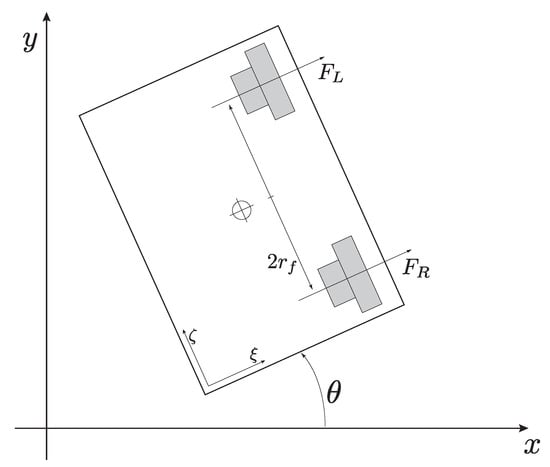 The study of potential fields took originally its moves from physics, chemistry and biology [] although its versatility makes it advantageous in several different fields such as vehicle coordination []. In fact, potential fields have been widely used to control different types of vehicles such as cylindrical robots [], helicopters [], road vehicles [] and unmanned ground vehicles [].