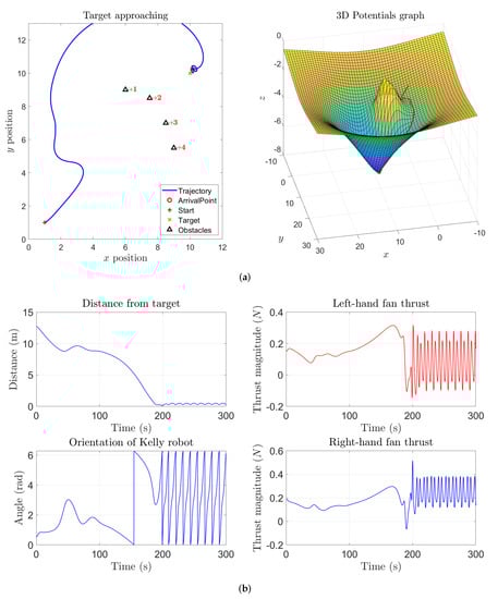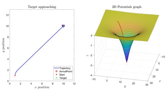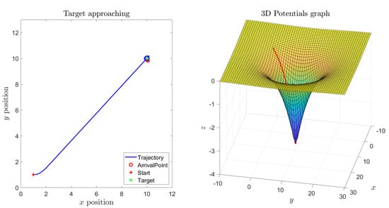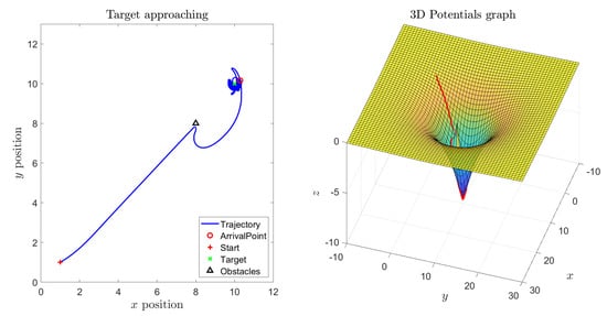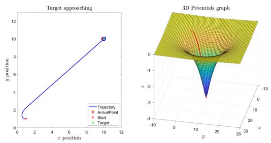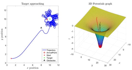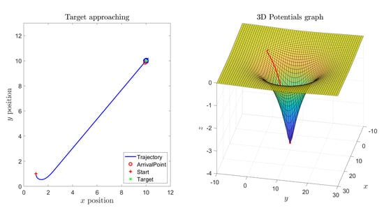 Most control problems of interest in engineering and applied sciences concern positioning, path planning and obstacles avoidance. A noteworthy example is given by the need of commanding a spacecraft in such a way that it avoids bright objects yet maintaining communication with ground station, as discussed in []. Further noteworthy examples are found in landing maneuvering of manned electric vehicles [], interception of mobile search vehicles [], and manual guidance of robotic manipulators []. Virtual potentials prove effective in solving non-linear control problems as they appear to be versatile and widely applicable. In order to control a particular dynamical system, it is necessary to build a virtual potential field. Such construction may be effected within a number of mathematical frameworks. For instance, a virtual potential field may be constructed by the use of harmonic functions and Laplace’s equations [,], artificial gyroscopic forces [] and stream functions from fluid dynamics [].