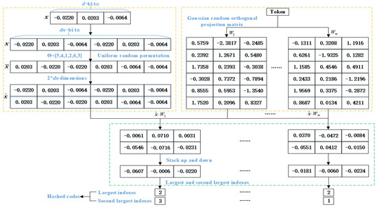 WTA hashing is based on partial order statistics that calculate an ordered embedding of input data. In other words, WTA is not based on the values of the input data (including absolute values and so on), but rather is a nonlinear transformation based on implicit order. Therefore, it reduces the interference of numerical types to a certain extent and can compare the internal similarity between items well. The steps of the WTA hashing process are as follows: