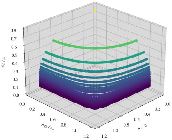 Figure 1 shows the phase diagram in space for and . For the phase boundary is quite similar to the analytically obtained continuum result [51] with slight deviations due to discretization and finite volume effects. At high temperature the phase boundary exhibited an approximate rotational symmetry in the - plane, i.e., it was crudely described by . In contrast to that, at low temperature, the phase boundary approached a square-like shape in the - plane.