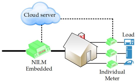 Generally, determining the consumption status of electrical appliances requires the installation of a voltage sensor and a current sensor on each electrical appliance, which is referred to as direct measurements or intrusive load monitoring systems [2,3]. Several disadvantages have been found in this method, such as the interruption of the load circuit, the cost of the electricity meter, the installation cost, the free space for the installation of the hardware, etc. NILM methods or indirect measurements focus on the use of a main electricity meter to indicate the operating status and energy consumption characteristics of electrical appliances [3]. Non-intrusive load monitoring is becoming increasingly important in terms of information needs for power management, and more and more smart meters are being installed in the power grid [4].