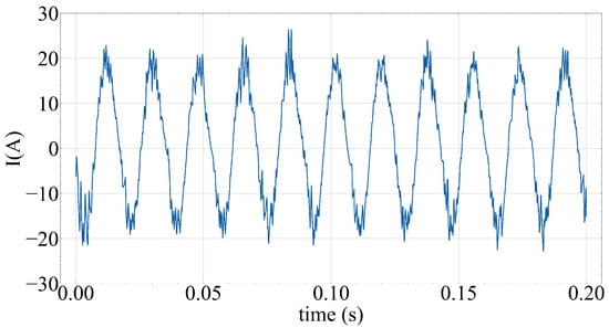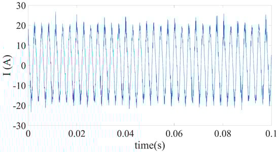 The sampling rate of the stator current fed back by the PMSM was 25 kHz. In order to collect enough samples, the data under normal and fault conditions were continuously sampled for 30 s. Under the same operating conditions, the speed set value was unchanged, but the actual speed of the motor fluctuated to some extent, and the sensor was affected by noise and measurement errors, so the stator current signal collected was not an ideal sine wave, as shown in Figure 6. For the faulty signal, only weak PMSM faults were studied in this experiment, so the change in the stator-current signals when a fault occurred was small, and there were no obvious fault symptoms. As a result, faults were invisible and could only be diagnosed using a specific algorithm.