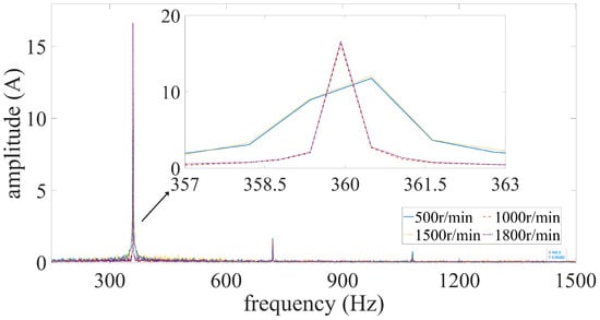 It can be seen that the fundamental frequency of the stator current under different conditions was aligned to 360 Hz after resampling, but there was a very small error. In the resampling process, the point closest to the set value of the sampling interval is directly selected instead of using an interpolation algorithm, and the sensor sampling rate is constant, so the actual sampling interval is not always equal to . Therefore, the actual sampling interval needs to be recorded and the residual calculated according to the actual sampling interval.