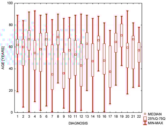 Table 4 depicts the relationship between the age of patients and the 22 most common diagnoses.