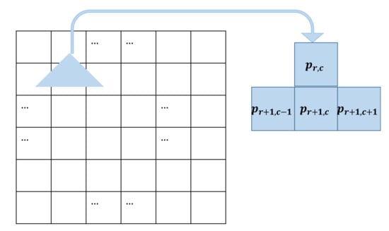 Step 1. Predict the pixel value by Equation (11) according to the predictor as shown in Figure 3.