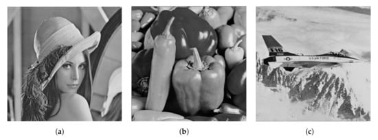 The three test images. (a) Lena, (b) Pepper, (c) Plane.