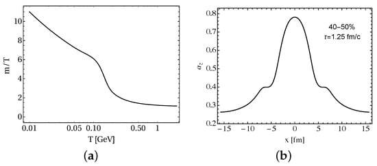 In the quasiparticle approach, one assumes the mass to be temperature dependent, i.e., . This results in a change in the bulk variables Equation (23). However, one can not simply insert into the bulk variables since this will not be thermodynamically consistent. The entropy density may be obtained in two ways: and . Then, by basically inserting a temperature-dependent mass m(T), the two identities will not give the same result. Therefore, the energy-momentum tensor definition needs a background field to correct this, i.e.,