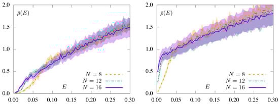 The relation (60) implies that the condensate Σ vanishes for m 0 in case the integral over E is finite. A condensate forms for small m if the integral is proportional to 1 / m . This happens when for a typical configuration there is an abundance of low-lying eigenvalues of D 0 2 . This is the content of the celebrated Banks-Casher relation which states that in the infinite volume limit the condensate is proportional to ρ ¯ ( 0 ) . Figure 6 shows the average spectral densities for N r = 1 (left panel) and for N r = 0.8 (right panel).