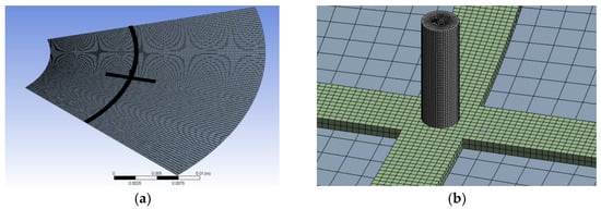 In the middle and late 20th centuries, the development of computational fluid dynamics (CFD) promoted the theoretical analysis and design research of air bearings. At present, CFD software simulation is often used in the design of aerostatic bearings to obtain air film pressure, bearing capacity, gas flow rate, etc. Sahto used CFD software to simulate and solve the internal distribution of pressure of the porous, orifice, and multiple-type aerostatic thrust bearing and analyzed the influence of material and geometric parameters on stiffness and bearing capacity [8]. Yan used CFD software to simulate and analyze the influence of different shapes of pressure-equalizing grooves on bearing performance [9]. Gao used CFD software to simulate and analyze the influence of the herringbone groove on the performance of the aerostatic journal under the conditions of high speed and low pressure [10]. The first step of CFD analysis and calculation is to generate meshes, that is, to subdivide the continuous calculation area in space, divide it into many sub-areas, and determine the nodes in each area. The CFD calculation process’s efficiency mainly depends on the generated meshes. The meshes used in the current public research are mainly structured meshes [11,12,13] and unstructured meshes [14,15], but there is no comparison of the simulation effects of different meshes.