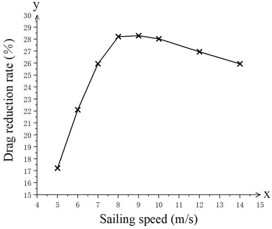 Variation of the drag reduction rate of the strut at different sailing speeds.