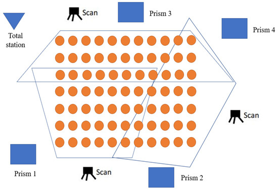Inspection accuracy and efficiency can be improved by using terrestrial laser scanning (TLS) technology. Another benefit of TLS is its long range, which allows data collection in inaccessible fields. The TLS system can be regarded as the best monitoring technique for high formwork owing to its ability to provide high spatial resolution and accurate measurements. A major benefit of TLS is that it provides rapid and dense measurements in inaccessible areas [16]. TLS can produce point clouds with high level of details and accuracy, which is particularly good for detailed investigations on a large scale [17,18]. The large amount of accurately measured data has great potential to deliver measurements that are difficult to achieve by other methods in such a short period of time, with simple installation requirements. TLS measurements require only a laser scanner, a laptop computer with data processing software, and several reference targets.