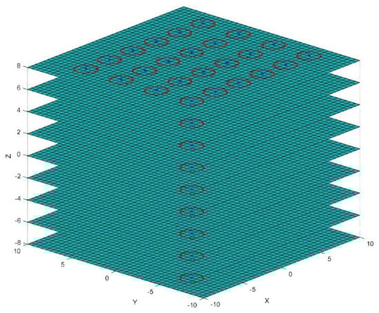 An array of Z-planes (Parallel to the XY plane) with a certain interval was inserted to the refined point cloud data and the data was projected onto the Z planes, as shown in Figure 6. For each slice, the point cloud data were projected on to the Z plane, as shown in Figure 7.