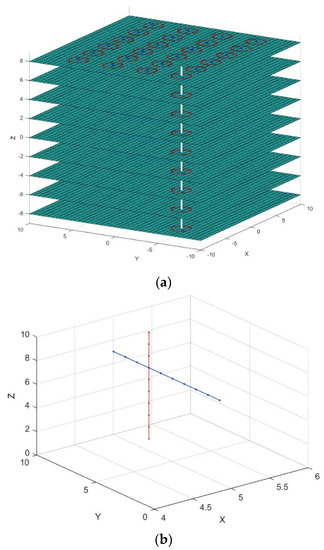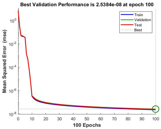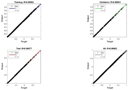 According to the results of the study [70], the position of the laser scanners has significant influence on data scanning accuracy. Hence, the study used the positions of the TLS as the ANN model inputs. In this study, the inputs of the ANN model were the coordinates of the key points, R distance, laser coefficients, and scan conditions. The output of the ANN model was the specified value (specified value of the set distance and space ). The value of the cross points can be calculated by using Equations (3)–(5).