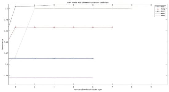 The model performance for ANN models with different momentum coefficients.