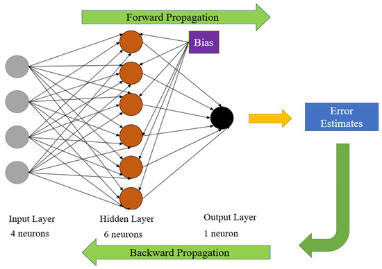 The ANN model was used to solve the non-linear problem. The strong self-learning ability of the ANN can generate accurate predictions with high computational speed. Many kinds of neutral networks have been established, and multilayer feed forward is one of the most popular. Back propagation (BP) is one of commonly used algorithm, which can minimize ANN error properly [62]. Hence, the back propagation (BP) neutral network was adopted in this study.