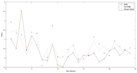 Although ANN has been widely and successfully used in many studies, it has several disadvantages. For example, it is tedious to choose the number of hidden layers and the number of nodes at the hidden layer; the learning rate of ANN is usually decided randomly; and it is more likely to achieve local minima rather than global minima [63,64,65]. Moreover, the proper selection of parameters such as learning rate and momentum coefficient are important for model convergence progress. Hence, in this study, genetic algorithm (GA) was utilized to designate the parameters of the ANN model including the number of hidden layers, the number of nodes at the hidden layer, learning rate, and the momentum coefficient.