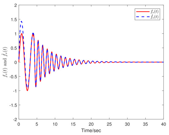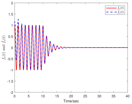 Figure 1, Figure 2, Figure 3 and Figure 4 show that the state, actuator faults, and sensor faults can be estimated by the LTFEO (13). By defining the fault functions, it can easily be determined that their derivatives oscillate at first and then converge to zero. According to Figure 3 and Figure 4, we can see that the state also oscillates at first and then converges to zero. It means that the proposed controller guarantees the DISS of the overall closed-loop system with respect to the derivative of the faults.