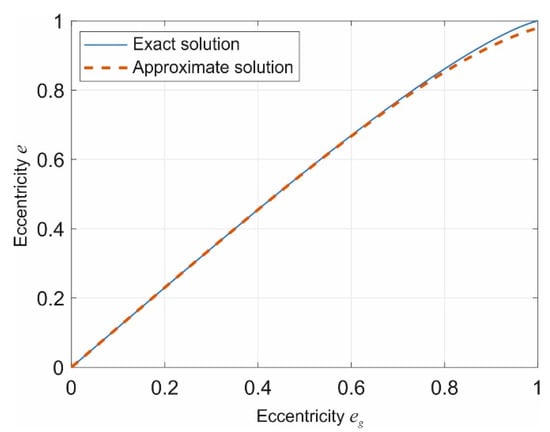 is the eccentricity of cross-sections of the indenter. For small eccentricities, the ratio of eccentricities of contact area and cross-sections of the ellipsoid is constant and equal to , which is the exact asymptotic value according to the Hertzian solution [9] (p. 35). Equation (49) provides a very good approximation for the exact solution for eccentricities up to 0.7 (see Figure 1).
