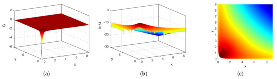 Similarly, for the Pascal’s Surface presented in Figure 2, Figure 4a details the Gauss curvature G. This Gauss curvature G is also presented in logarithmic scale and as a contour plot in Figure 4b and Figure 4c, respectively.