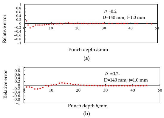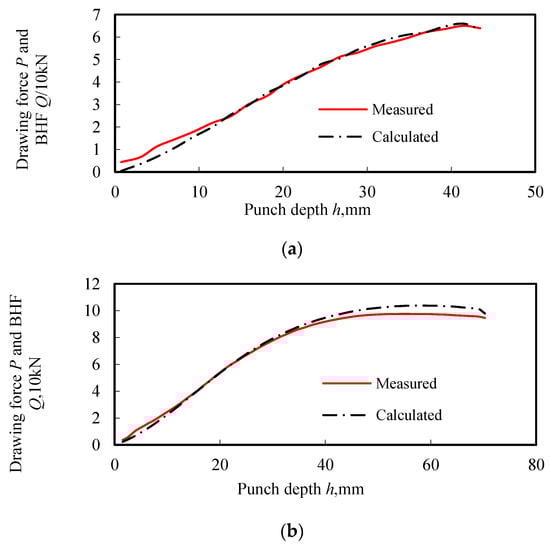 The relative error of calculation and measurement drawing Force. (a) SPCC steel; (b) Al-5754.