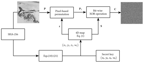 - Zhang, J.; Lu, Z.; Li, M. Study on an efficient hyper-chaos-based image encryption scheme using global bit permutation. Technol. Health Care 2020, 28, 303–309. [Google Scholar] [CrossRef]