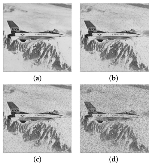 Digital images are transferred through various transmission media that are often subjected to the noise present in the channel. This noise can affect the quality of the decrypted image if the corresponding cipher image is subjected to it. To assess the capability of the presented cryptosystem in order to resist such noise attacks, the cipher images are contaminated by the salt and pepper noise with densities 0.005, 0.05, 0.1, and 0.3. Figure 14a–d show the analogous decrypted images. It can be seen from the figures that these images are noisy but still perceivable. Moreover, Table 9 shows the comparison among different algorithms in terms of mean PSNR among the pristine and the decrypted images. The proposed scheme outperforms other algorithms with the highest value of the PSNRs, and it can withstand noise attacks.