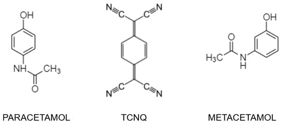 CCDC 2147971 contains the supplementary crystallographic data for paracetamol-TCNQ co-crystal and CCDC 2148006 contains the supplementary crystallographic data for metacetamol-TCNQ co-crystal. These data can be obtained free of charge via www.ccdc.cam.ac.uk/data_request/cif (accessed on 14 February 2022), or by emailing data_request@ccdc.cam.ac.uk, or by contacting The Cambridge Crystallographic Data Centre, 12 Union Road, Cambridge CB2 1EZ, UK; fax: +44 1223 336 033.
