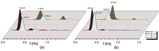Power spectral density (PSD) function for (a) velocity and (b) temperature at the monitoring point P (z = 0) on the free surface.