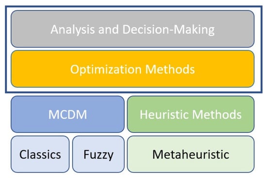 However, the decision maker not only faces the aforementioned situations, but also the need to obtain increasingly precise and reliable results [36,37], in addition to handling data with uncertainty [4,8]. This is why the strategies created for data analysis help decision makers obtain the best solution. Among these strategies are the multi-criteria methods and the optimization methods, which are detailed in the following sections.