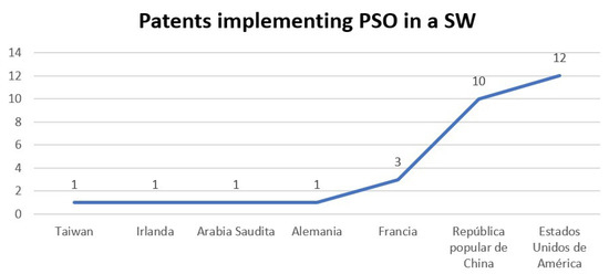 Among the 135 patents that used PSO, 29 implemented the algorithm in an SW (it is important to point out that for this work the programs, systems, or software will be named SW, taking into account that the concepts are different, but they will serve to be able to group all these elements in a single word), see Figure 7.