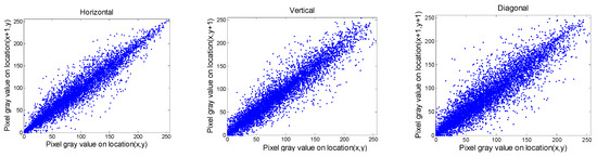 Correlation coefficients for color images computed in three directions: horizontal, vertical and diagonal.