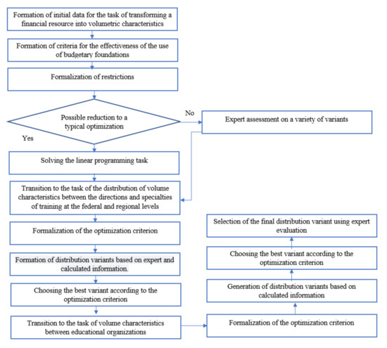 Optimization modeling of the automated process of resource efficiency management in the higher education system is advisable to organize in the form of a multi-stage procedure for choosing the best options for making optimally compromise management decisions, including the transformation of the budgeted financial resource into volumetric characteristics of the system, distribution of the obtained volumetric characteristics taking into account the directions and specialties of higher education, international, federal, and regional needs for the qualified personnel and then between educational organizations, taking into account their applications and potential.