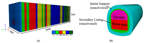 - Wang, Y. Study on the Initial Support’s Mechanical Effects of Soft Rock Tunnel under High Geo-Stress; Chongqing University: Chongqing, China, 2013. [Google Scholar]