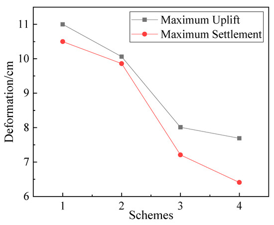 | Maximum settlement (cm) | 10.5 | 9.86 | 7.21 | 6.41 |