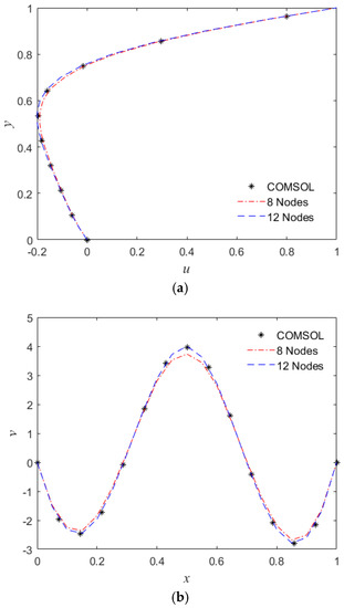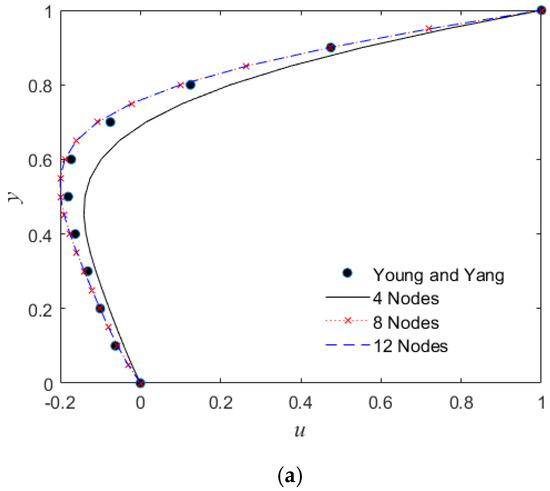 25] presented LSFEM for Navier–Stokes equations of viscous incompressible fluids. They focused on first-order systems based on velocity–vorticity formulation associated with the mixed formulation. Predominantly low-order nodal expansion was employed to develop the discrete finite element model in the context of least-squares finite element formulations. However, low order nodal expansions tend to lock when the least-squares functional is a nonequivalent formulation. Locking occurs in lower-order elements because the element’s kinematics are insufficient to represent the correct solution. It means the effect of a reduced rate of convergence in dependence of a parameter. Therefore, the present study is proposed to use the higher-order element to prevent this locking issue.