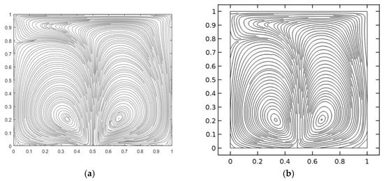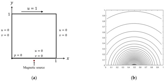 27], where the magnetic effect was investigated on the basis of the Navier–Stokes equation using a finite difference method. The current study focused on solving the Stokes flow with a magnetic effect using LSFEM. Observed results by this study and by [