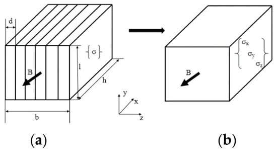 Homogenization of laminated core. (a) Lamination structure; (b) homogenization structure.