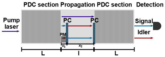 In a general form, the phase matching function of the whole nonlinear interferometer of length including several poled regions can be given by the expression [43,44,45,46]: