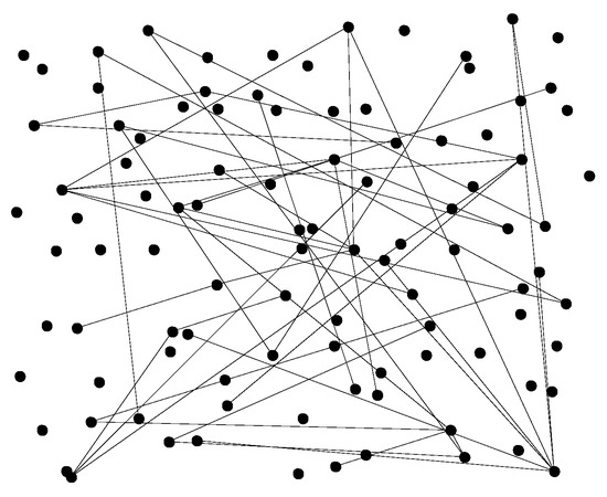 We add edges for each node i with probability . First, a node is chosen as one endpoint of the edge with probability . Then, another node is randomly selected from among the non-adjacent nodes of node to be the other endpoint of the new edge. This process is repeated times.