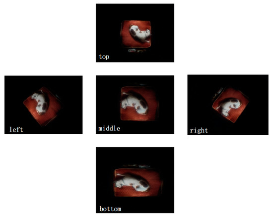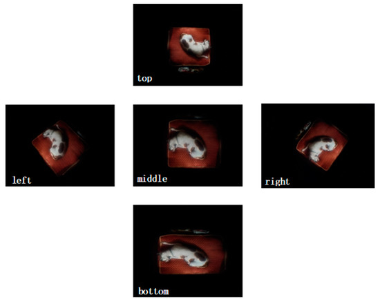 We analyze the imperceptibility of the watermark after embedding the ghost imaging encrypted watermark into the carrier light-field image using the cellular automata transformation (CAT) algorithm. We evaluate the imperceptibility of the image from both subjective and objective aspects. First, in our experiments, we compare the 3D images before and after embedding the watermark displayed by the desktop 3D-integrated display from five viewpoints: top, middle, bottom, left and right, as shown in Figure 5 and Figure 6.