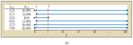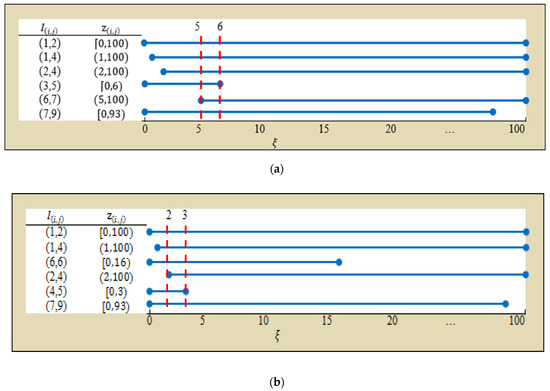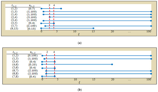 The idea behind this basic premise is that the value should be congruent with the DM’s preference structure whereby the ranking of the given by the DM should be consistent with the ordering of the corresponding values. For example, if the DM prefers to (denoted as ), should be less than . We employed the pairwise ranking scheme that compares only one pair of vectors at each time. The maximum number of pairwise ranks is . If the expression is true, then the possible interval of is obtained, otherwise, it will not be considered as the interval of . This procedure is repeated for all pairwise vectors. Next, the set of all interval that satisfies inequalities is obtained by intersecting the for all possible pairs of vectors.
