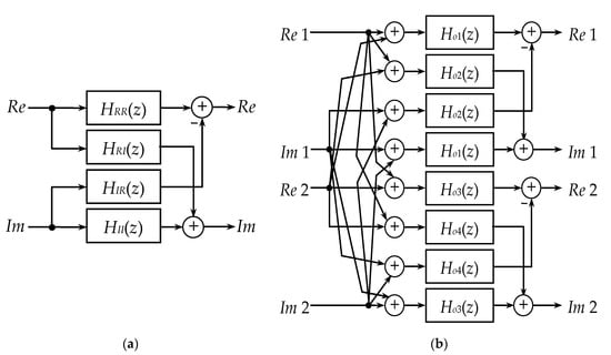 Block diagram of (a) orthogonal complex and (b) orthogonal bicomplex realization [24].