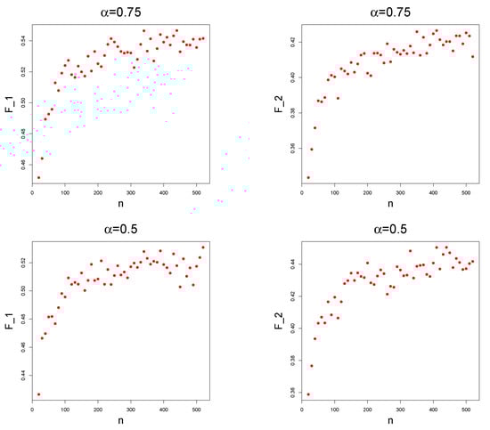 - Chambers, J.M.; Mallows, C.L.; Stuck, B. A method for simulating stable random variables. J. Am. Stat. Assoc. 1976, 71, 340–344. [Google Scholar] [CrossRef]