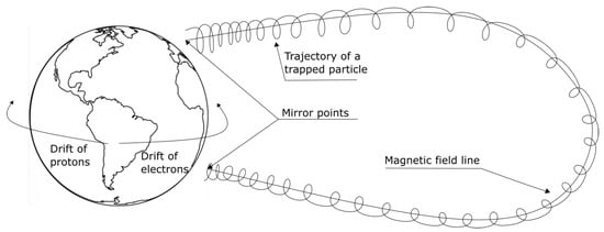 Movement of charged particles due to the interaction with the Earth’s magnetic field [8].